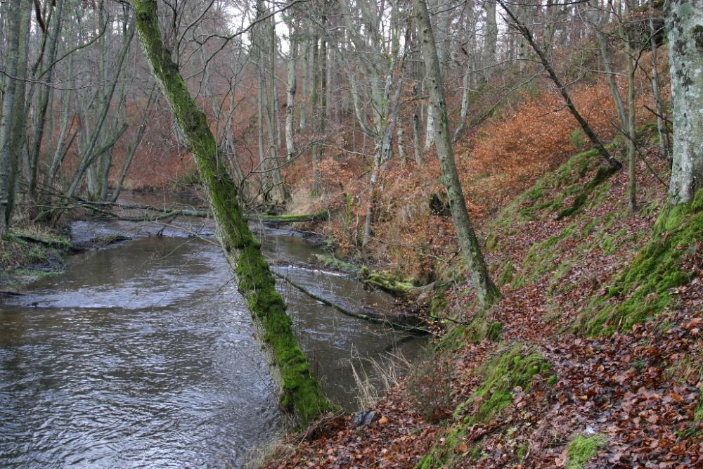 Przecinamy Pradolinę Łeby w jej chyba najbardziej malowniczym miejscu. Przed nami jaz (6,8 km), którym przekraczamy rzekę. Ciche i przytulne miejsce zachęca do krótkiego odpoczynku. Po bardzo stromej lecz krótkiej wspinaczce możemy przez chwilę podziwiać przełom Łeby w jego najbardziej malowniczym miejscu. Zaraz potem skręcamy w lewo i leśnymi drogami docieramy do asfaltu Strzebielino – Paraszyno (7,7 km).